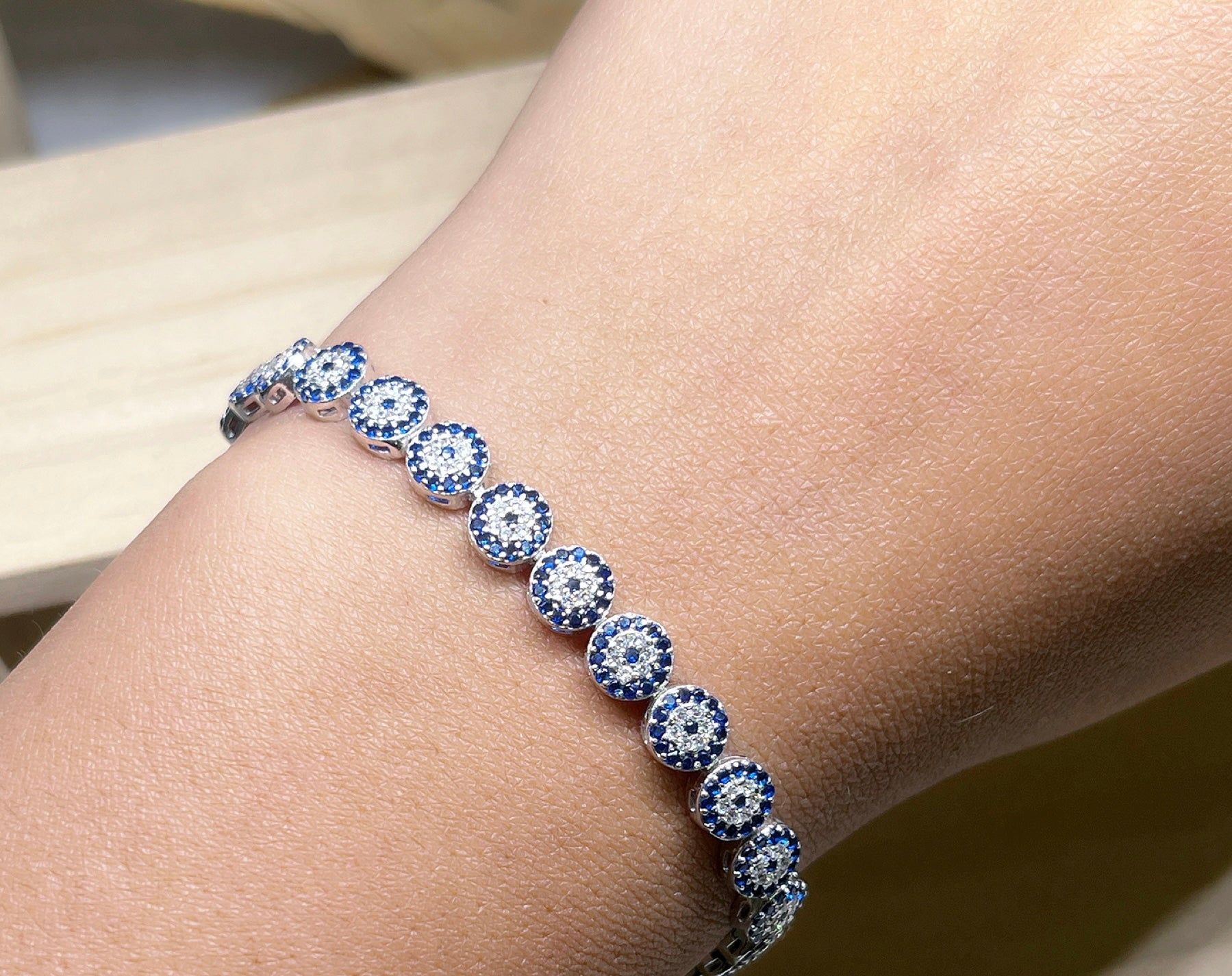 Sterling silver 925 full evil eye tennis bracelet. Such an exquisite piece of jewellery.